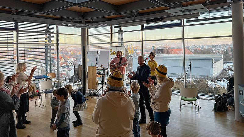 Die Allgäuer Kinderband Jamuk sorgte mit ihren eigenen, mitreißenden Songs für strahlende Kinderaugen und ausgelassene Stimmung. Auch Newcomer Flo Wurm stand auf der Bühne und trug mit seinem Auftritt zu einem warmen musikalischen Empfang für Dr. Sauer bei. Gemeinsam schufen die Künstler eine emotionale Atmosphäre.